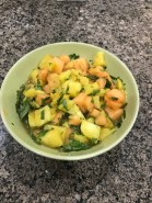- Transfer fruit to a cutting board, and allow it to cool. Once cool, chop and mix with lime juice and cilantro