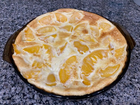 - Enmantequillar un molde y repartir los melocotones en el fondo.