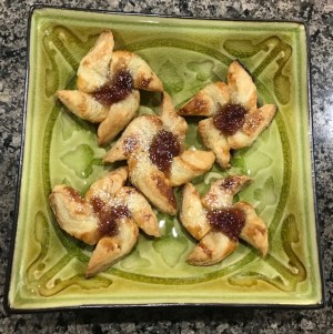 1. Roll out pastry dough enough to cut approximately 20 3-inch squares