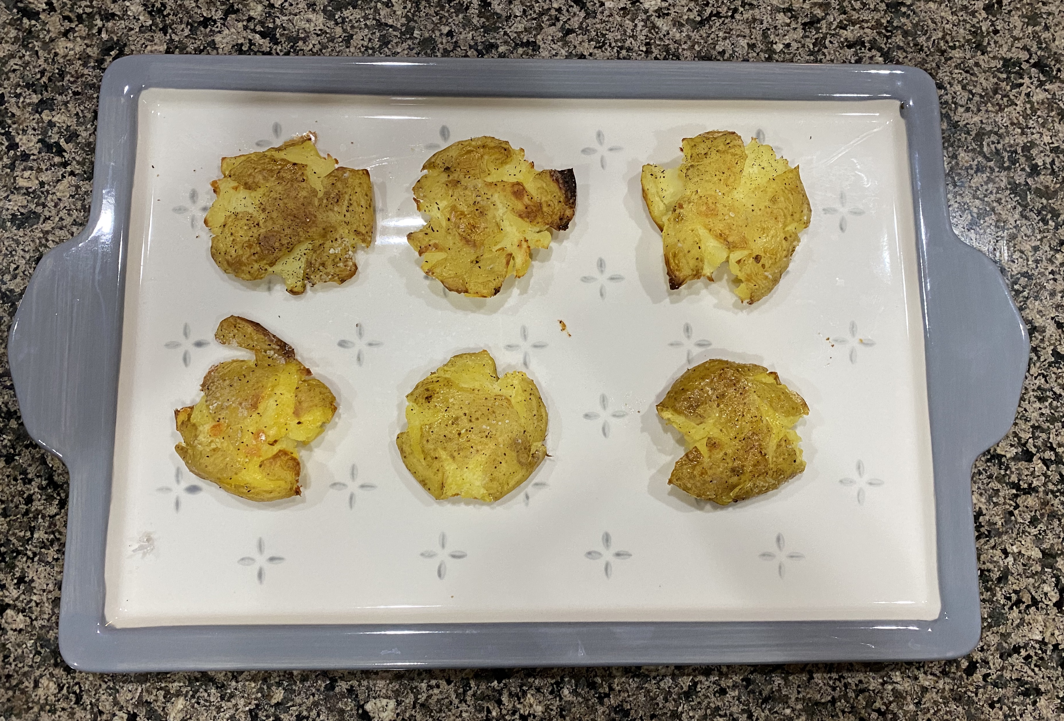 - In a medium saucepan cover potatoes with lightly salted water. Bring to boiling over high heat. Reduce heat to medium and cook potatoes until tender when pierced with the tip of a knife, about 20 minutes. Drain, rinse under cold water, and drain again. Cut each potato in half, transfer to a medium bowl and refrigerate to cool