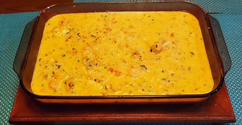 Agregar la leche de coco y el comino, mezclar y cocinar por 8-10 minutos. Agregar el pescado, tapar y reducir el calor a bajo y cocinar por 10-15 minutos. Agregar el camarón y cocinar por 10 minutos hasta que el pescado y el camarón estén cocinados.
