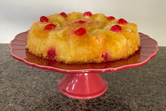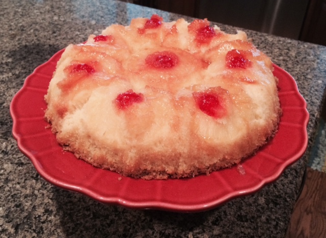 Engrasar un molde con mantequilla y espolvorear con azucar morena. Poner la pinha en el fondo con una cereza en la mitad de cada pinha. Se bate la mantequilla con el azucar hasta formar una crema. Se agregan los demas ingredientes batiendo muy bien. Se agrega un poco del jugo de pinha. Se vierte en un molde y se lleva al horno a 300 grados mas o menos durante 55 minutos.