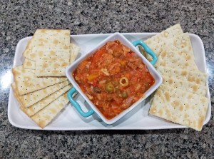 Todo menos la lechuga se pone con una o dos horas de anticipación en media taza de aceite de oliva, un cuarto de taza de vinagre, una cucharada de salsa O.K. o salsa negra, una cucharada de azúcar, una cucharadita de sal y un tris de pimienta. Se deja dos horas y se cuela. (yo guardo el liquido en caso de necesitar mas liquido al final).